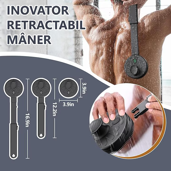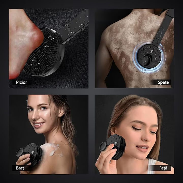 Practică și versatilă, peria de corp electrică 2 în 1 oferă curățare profundă și relaxare, fiind soluția ideală pentru o rutină completă de îngrijire personală.