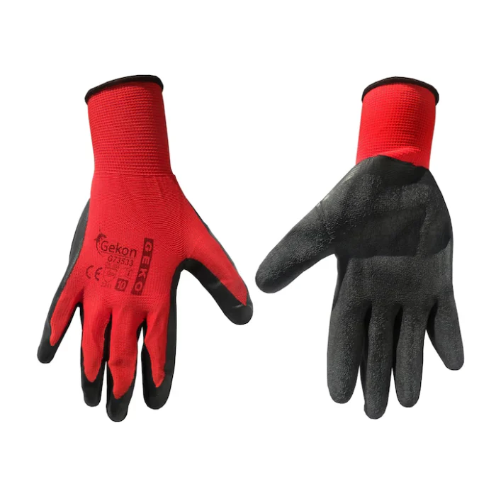 Designul ergonomic și rezistența materialelor permit manevrarea precisă a uneltelor și obiectelor, reducând oboseala mâinilor chiar și în timpul lucrului prelungit. Combinația de culori roșu cu negru oferă vizibilitate și un aspect profesional.