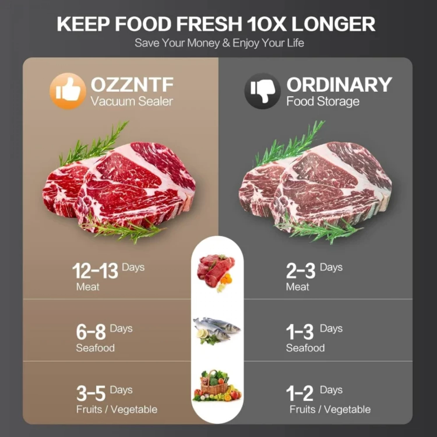 ✔ Pastreaza alimentele proaspete de pâna la 10 ori mai mult