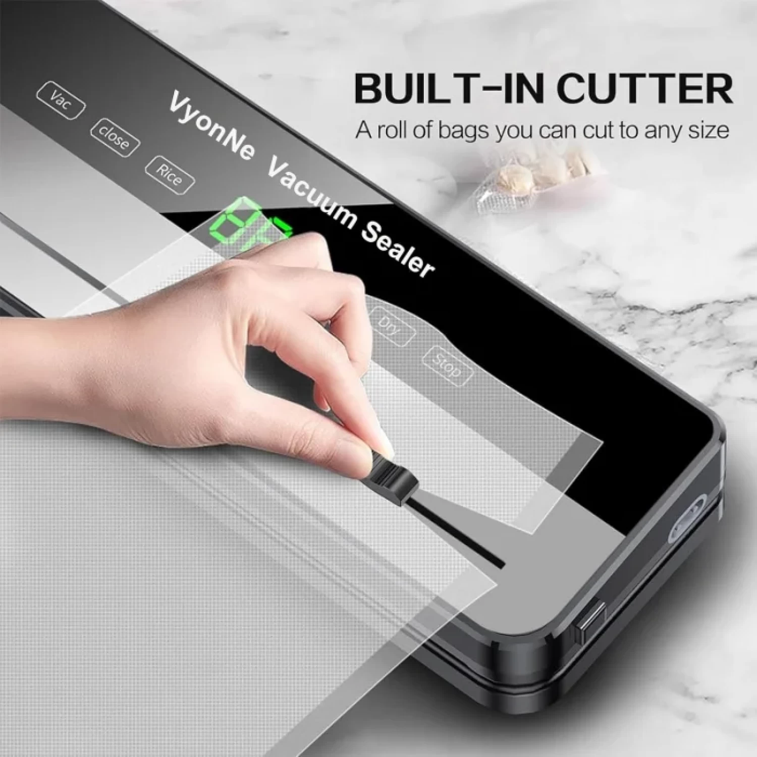 Prin eliminarea aerului si sigilarea etansa, aparatul previne oxidarea alimentelor si mentine aromele autentice, contribuind la reducerea risipei alimentare si la economisirea timpului si banilor.