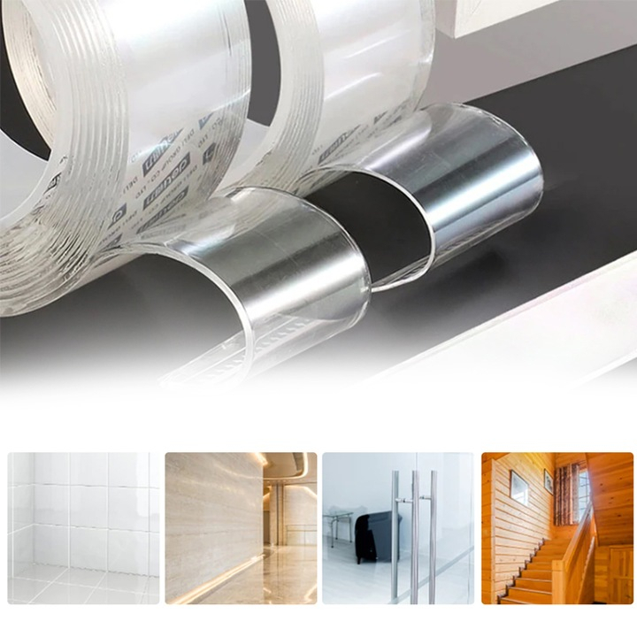 Practică și versatilă, banda dublu adezivă reutilizabilă oferă o soluție eficientă de fixare, combinând aderența puternică cu posibilitatea de reutilizare.