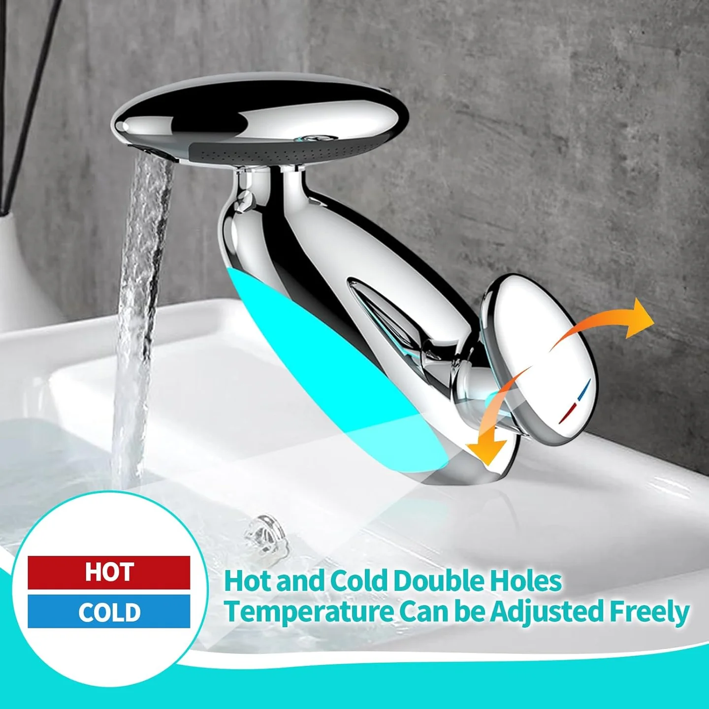 Baterie Chiuvetă Baie cu LED Inteligent, 4 Moduri de Jet, Cap Retractabil Extensibil 58 cm, Iluminare Automată în 6 Culori fără Baterii, Design Modern și Funcțional, Culoare Argintiu
