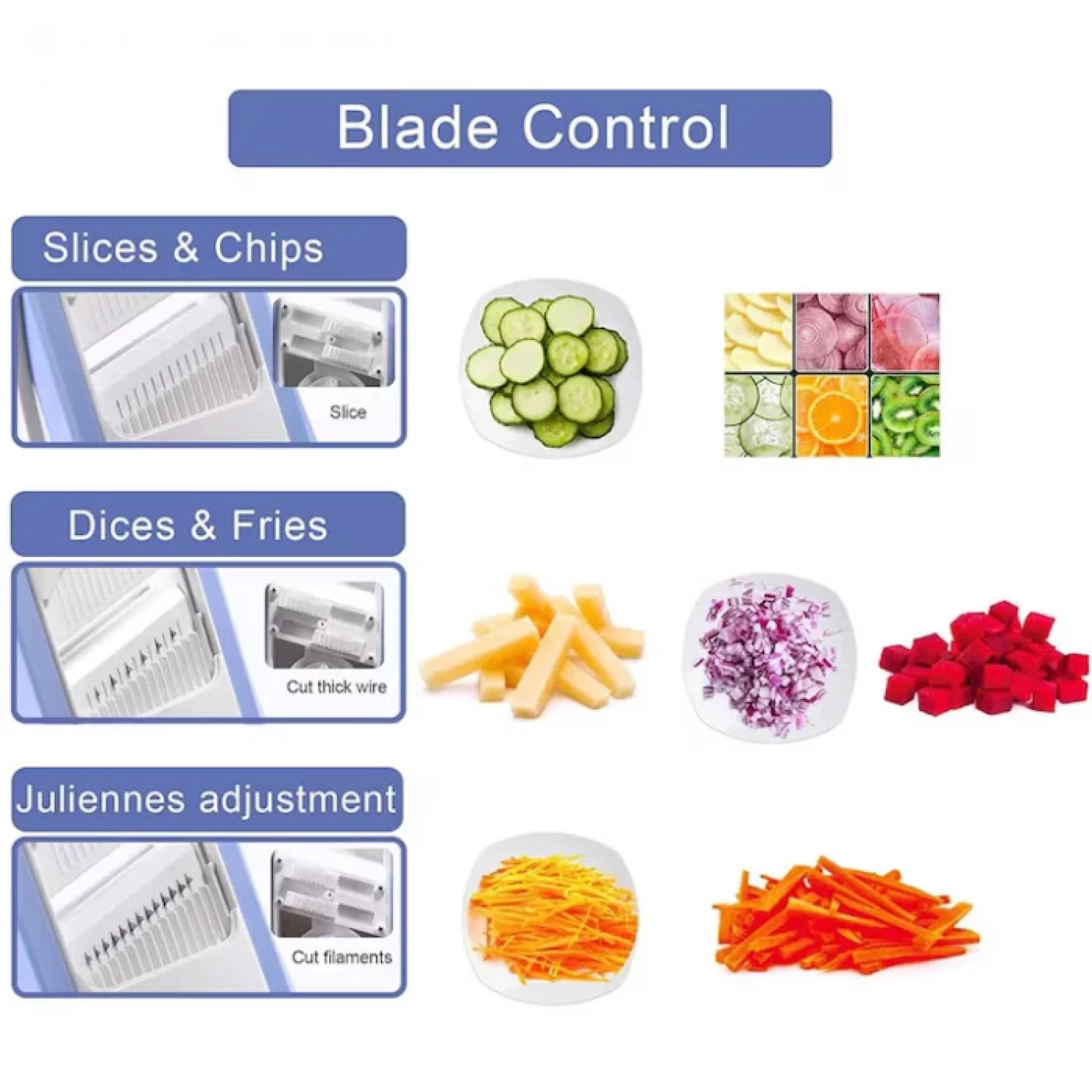 Feliatorul de legume multifunctional este solutia ideala pentru prepararea rapida si sigura a alimentelor în bucatarii casnice si profesionale. Cu pâna la 30 de tipuri diferite de taiere într-un singur dispozitiv, nu mai este nevoie sa schimbi lamele, economisind timp si sporind eficienta în bucatarie.
