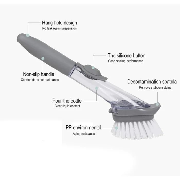 Peria de spălat vase 3-în-1 cu dispenser detergent transformă curățenia în bucătărie într-o activitate rapidă și eficientă, combinând funcționalitatea mai multor accesorii într-un singur instrument practic. Aceasta permite spălarea vaselor, raclarea resturilor de murdărie și dozarea controlată a detergentului, economisind timp și efort.