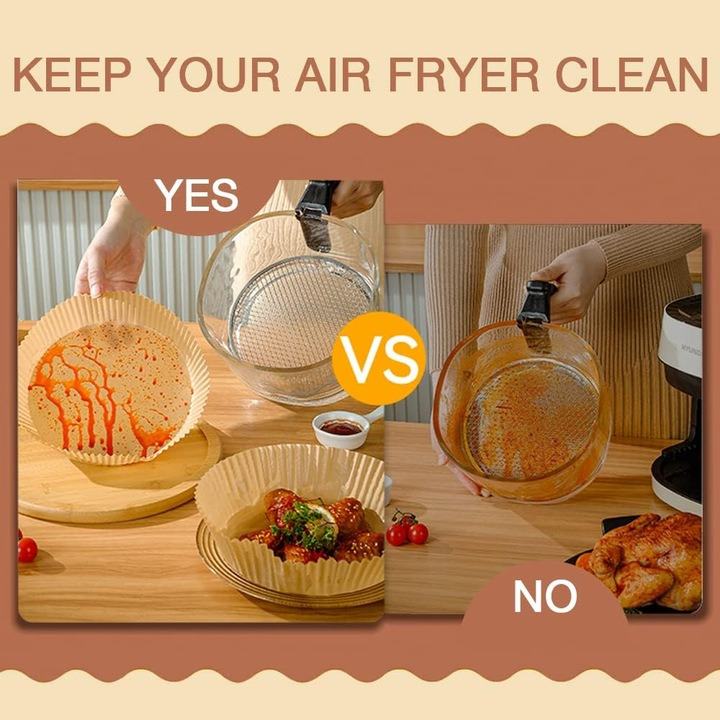 Gătește mai curat și fără griji cu acest set de 50 bucăți hârtie de copt de 16,5 cm, concepută pentru utilizare practică în air fryer, cuptor sau tigaie. Rezistentă la apă și ulei, previne lipirea alimentelor și facilitează curățarea rapidă după gătire.