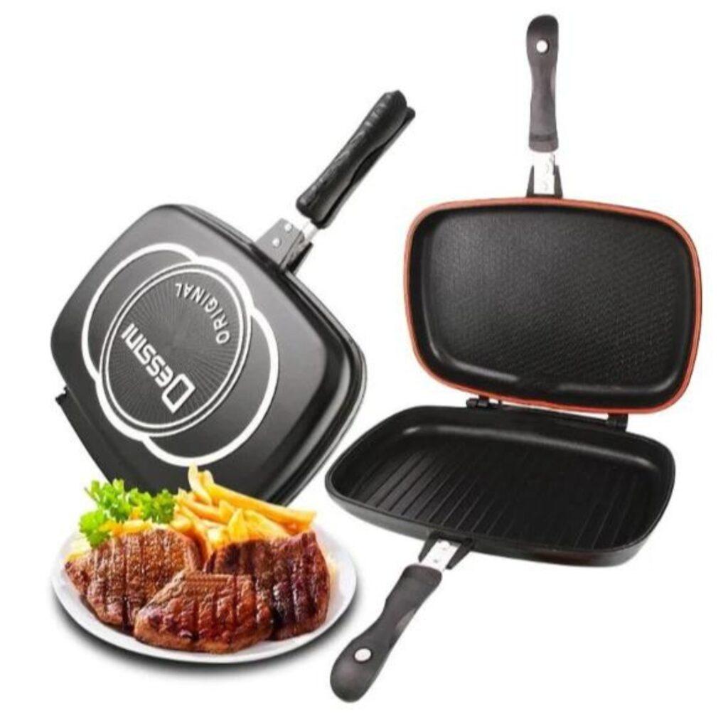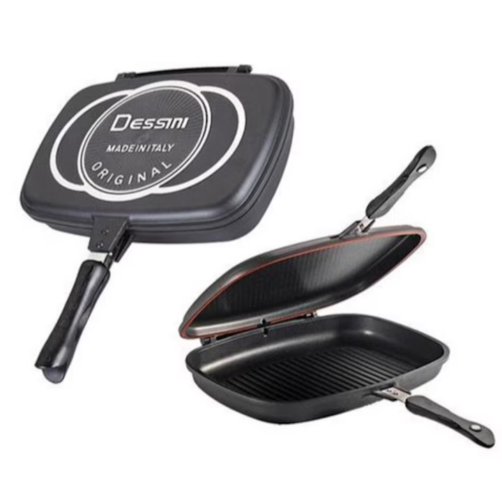 Practică și eficientă, tigaia dublă antiaderentă de 36 cm oferă control, uniformitate și confort în fiecare preparat, transformând gătitul într-o experiență mai simplă și mai curată.