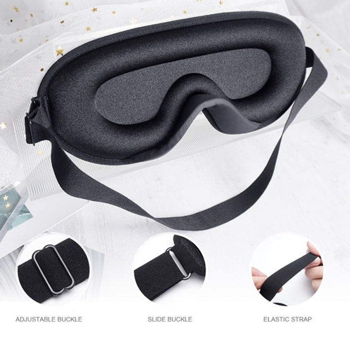 Confortabilă și practică, masca de dormit ergonomică oferă întuneric complet și relaxare, fiind accesoriul ideal pentru un somn de calitate oriunde te-ai afla.