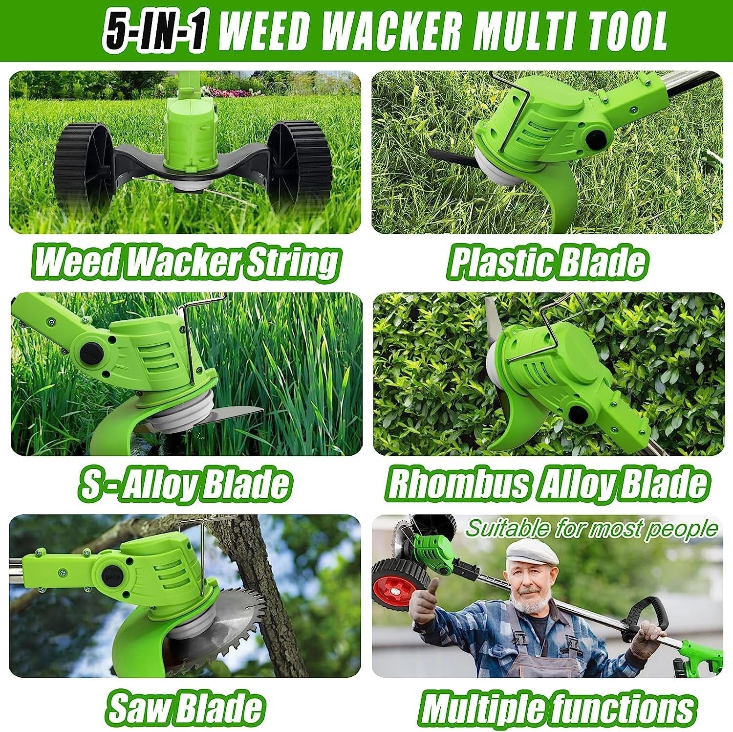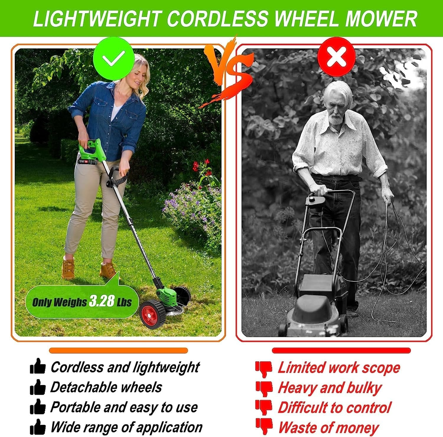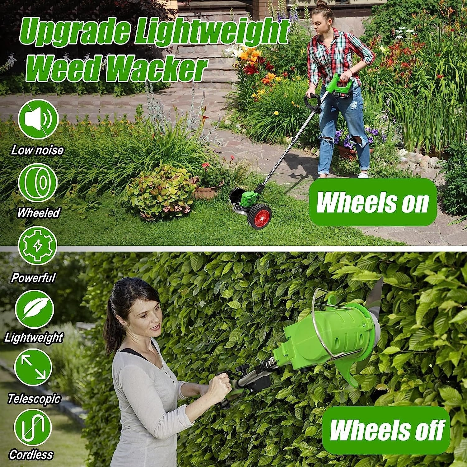 Motorul puternic atinge până la 18.000 RPM, asigurând tăiere rapidă a ierbii și buruienilor. Setul include 2 acumulatori de 4000 mAh pentru autonomie extinsă, iar accesoriile multiple (disc, 2 lame și 5 palete) permit adaptarea în funcție de tipul de vegetație. Roțile detașabile oferă stabilitate și ușurință în ghidare.