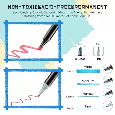 Transformă-ți ideile în opere de artă cu acest set de markere profesionale cu două capete. Ideal pentru desen, schițe, ilustrații sau pictură, fiecare marker oferă precizie și culori intense care dau viață creațiilor tale.