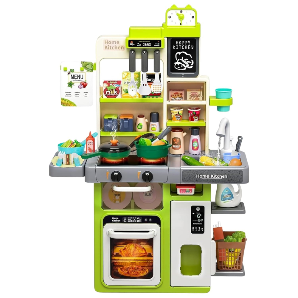 Set bucătărie copii 42 accesorii incluse, ustensile și alimente, material plastic fără BPA, design cu margini sigure, potrivit pentru băieți și fete, verde