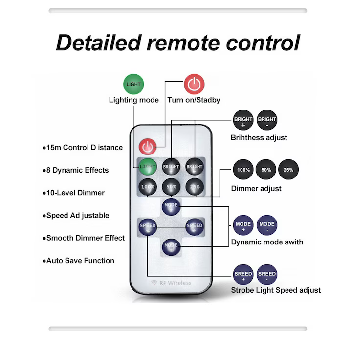 Brațul telescopic reglabil până la 5 metri permite poziționarea luminii la înălțimea dorită pentru acoperirea unei suprafețe extinse. Setul include mai multe adaptoare de alimentare și telecomandă pentru control facil de la distanță.