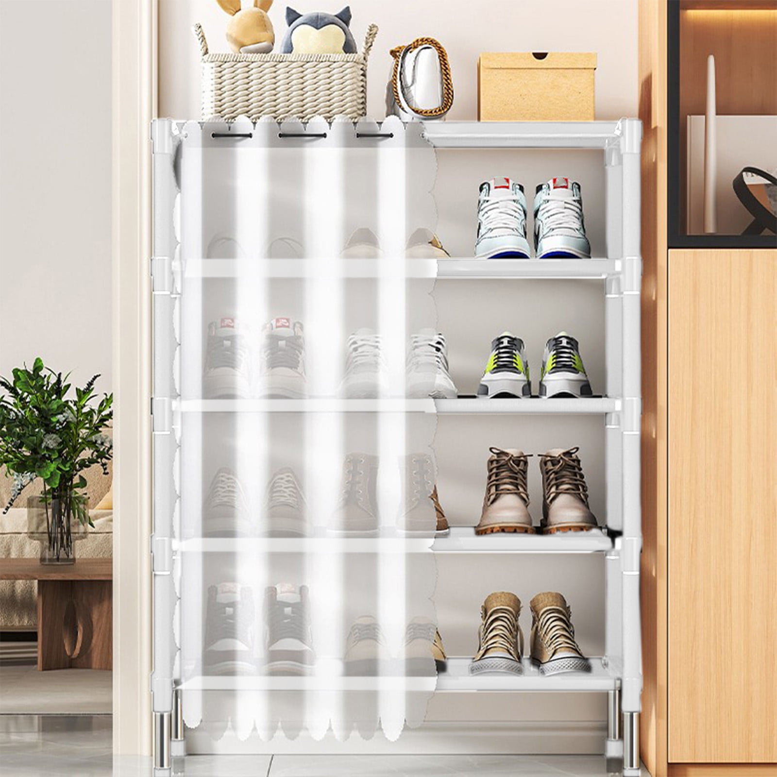 Organizează eficient încălțămintea și menține ordinea în locuință cu acest raft pentru încălțăminte cu perdea, conceput pentru a economisi spațiu și a oferi un aspect îngrijit. Designul compact îl face ideal pentru hol, dormitor sau dressing, protejând pantofii de praf și păstrându-i ascunși discret.