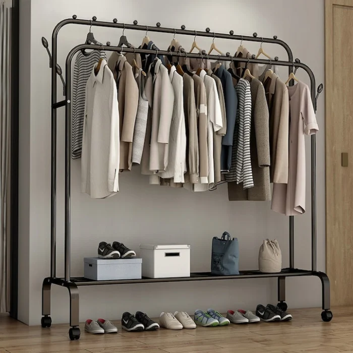 Practic și versatil, suportul de haine din metal oferă o combinație excelentă între stabilitate, funcționalitate și design modern, fiind alegerea ideală pentru organizarea eficientă a locuinței tale.