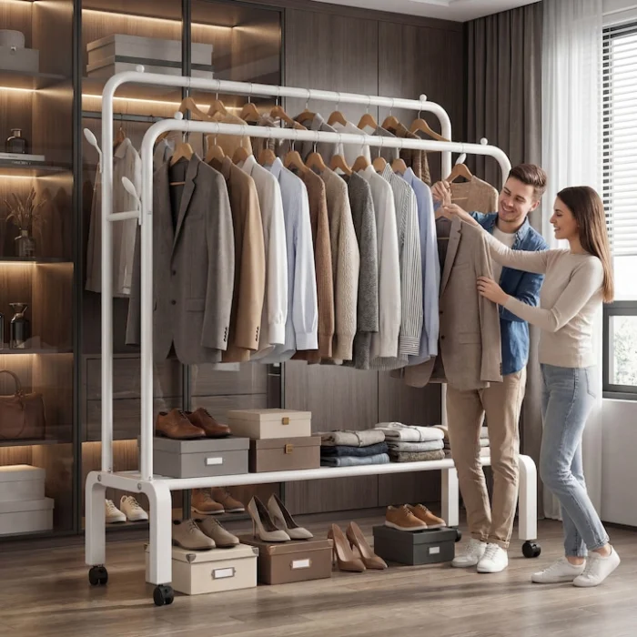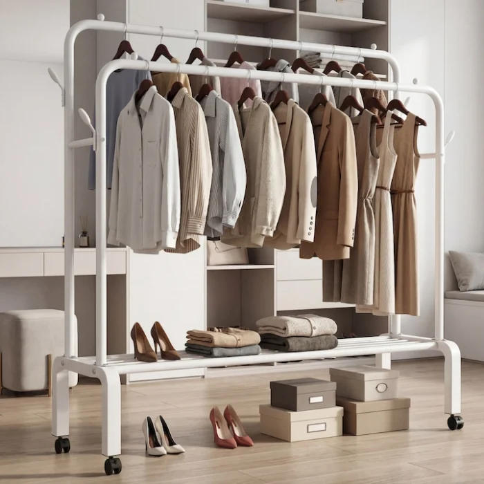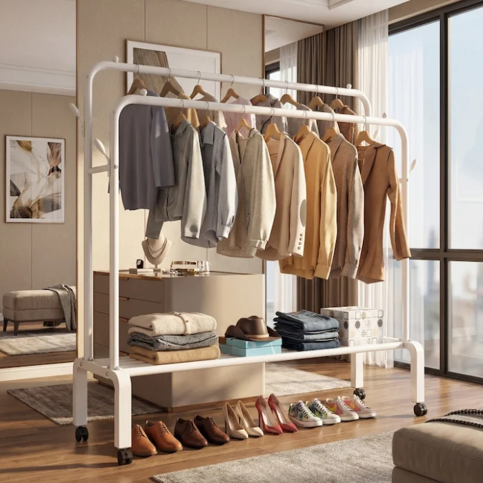 Practic și versatil, suportul de haine din metal oferă o combinație excelentă între stabilitate, funcționalitate și design modern, fiind alegerea ideală pentru organizarea eficientă a locuinței tale.