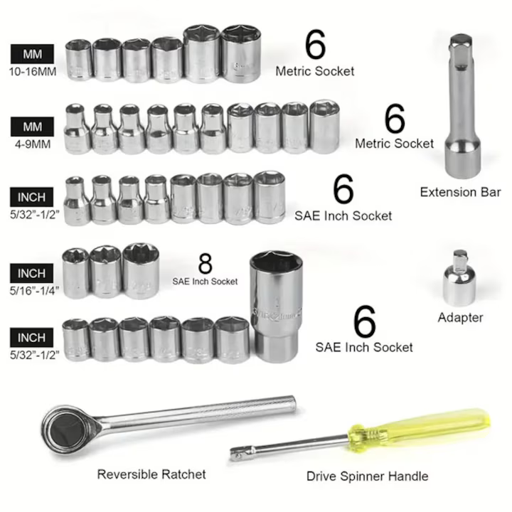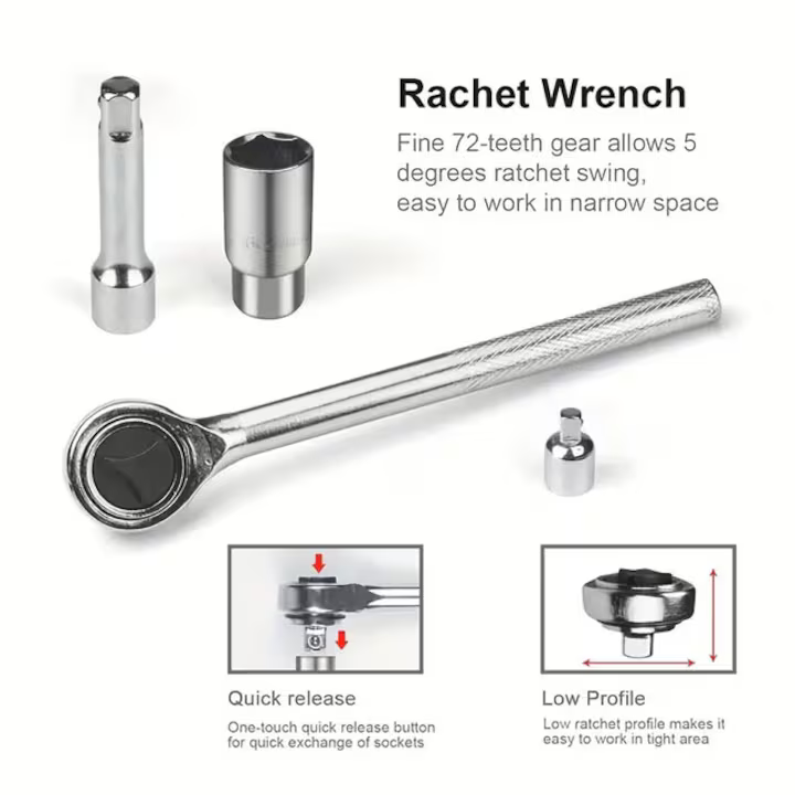Practic, rezistent și ușor de utilizat, setul de chei cu clichet 40 bucăți este soluția ideală pentru lucrări precise și eficiente în orice situație.