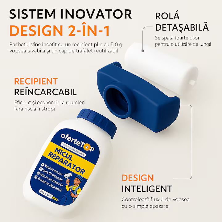 Practic și eficient, trafaletul Magic cu rolă reutilizabilă oferă o soluție simplă pentru aplicarea uniformă a vopselei, contribuind la realizarea rapidă a lucrărilor de renovare din locuință.